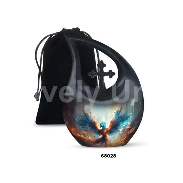 โกศใส่กระดูกนกฟินิกซ์สีดำสำหรับผู้ใหญ่ขี้เถ้าของมนุษย์สำหรับตกแต่งพร้อมถุงกำมะหยี่