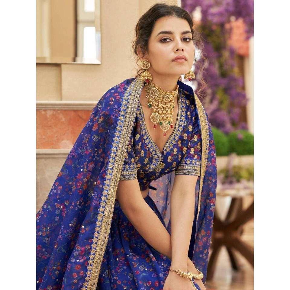 ชุดเสื้อกางเกงผ้าโปร่งบางสีฟ้าชุดผู้หญิงพิมพ์ลายดิจิตอลสวยงาม