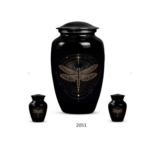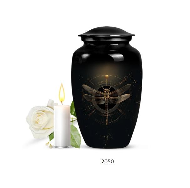 Beautiful Modern Blue Dragonfly Flying Large Cremation Adult Urn for Human Ashes Decorative Lid with Free Velvet Bag