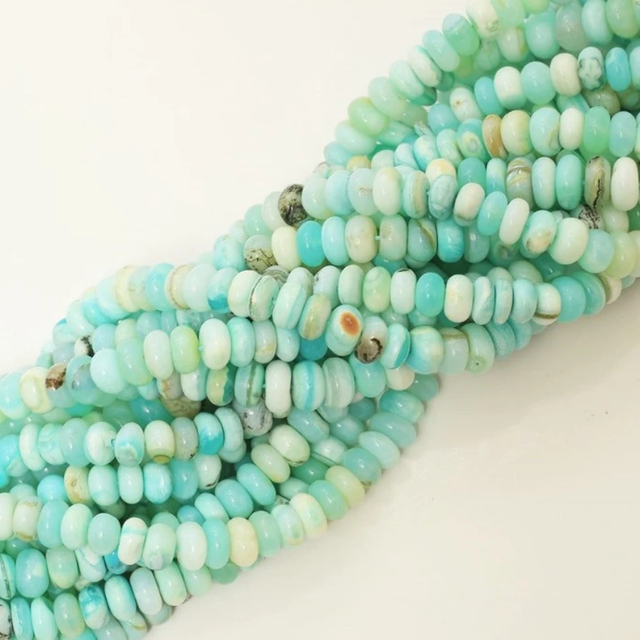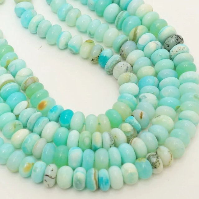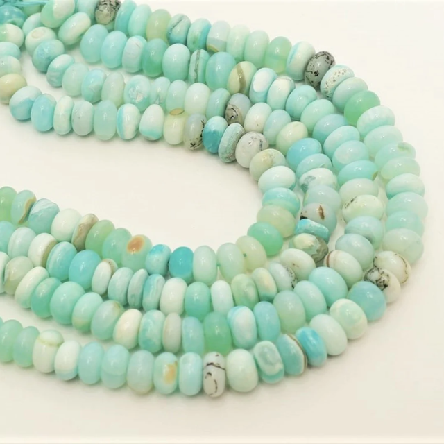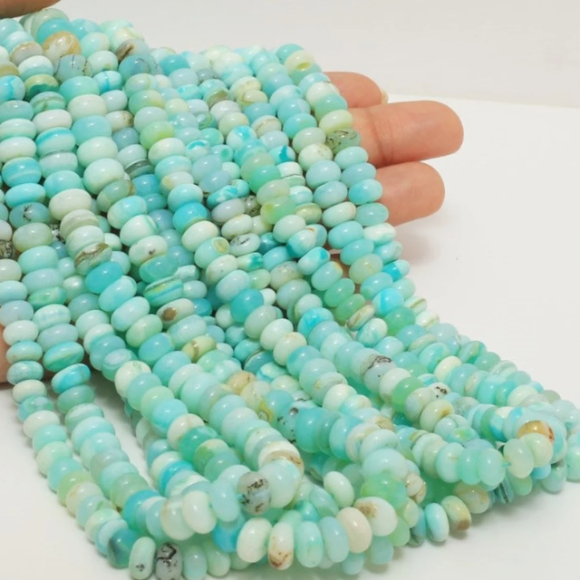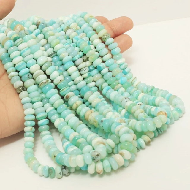 ลูกปัดโอปอลเปรูสีน้ำเงินสวยงาม รูปทรงรอนเดลล์ เรียบเนียน ขนาด 15 นิ้ว 5-8 มม. ลูกปัดอัญมณีโอปอลเปรูสีไล่ระดับ เรียบเนียน สำหรับทำเครื่องประดับ