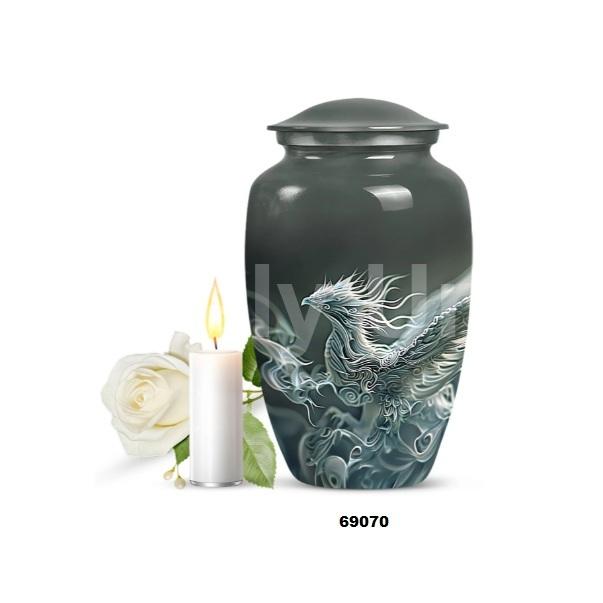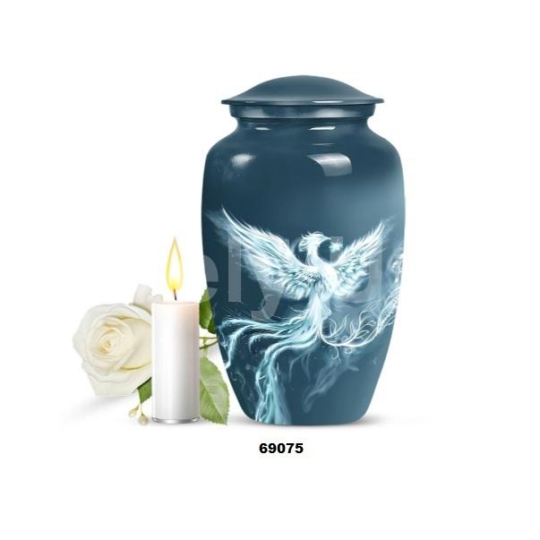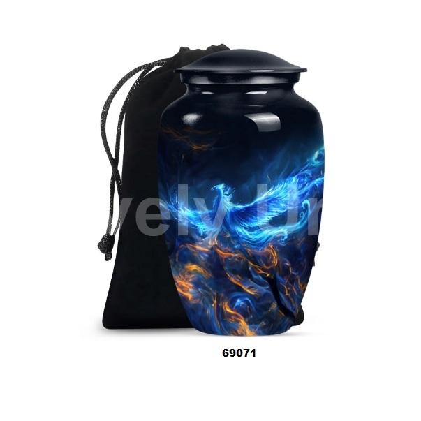 Beautiful Blue Phoenix Bird Cremation Urn for Adult Ashes Decorative Large Aluminium Memorial Urn for Human Ashes With Free Bag