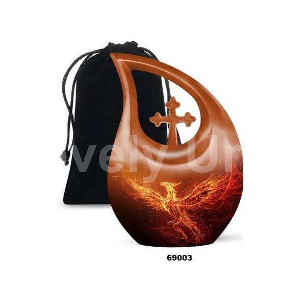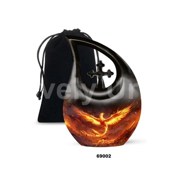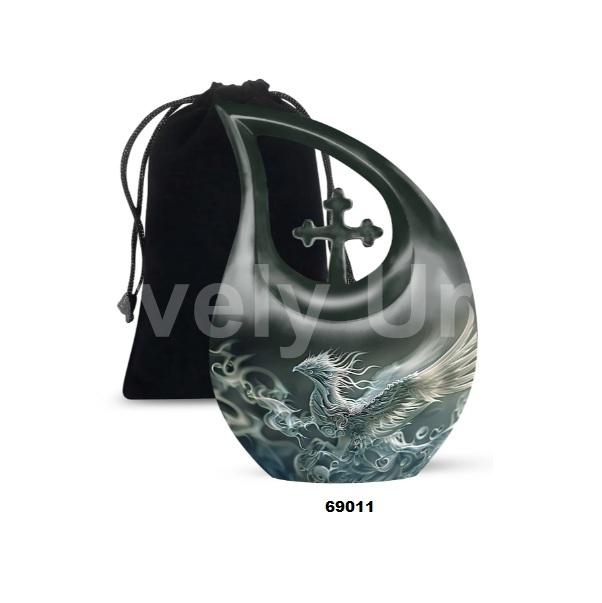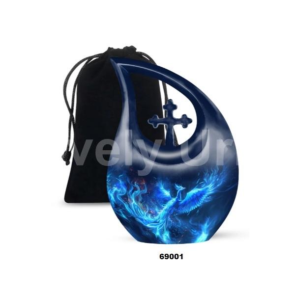 Beautiful Blue Phoenix Bird Cross Tear Drop Cremation Adult Urn for Human Ashes Decorative Keepsake Urn With Free Velvet Bag