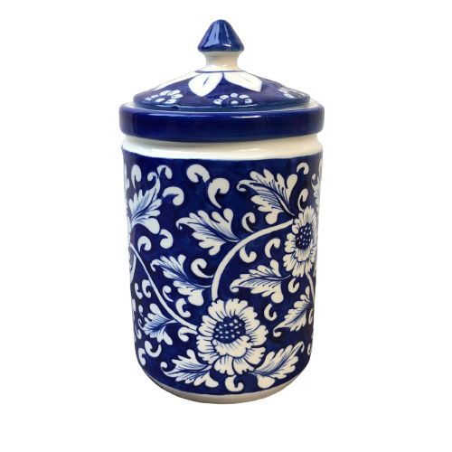 กระปุกใส่ดอกไม้เซรามิกเคลือบด้วยมือสีฟ้าสวยงาม