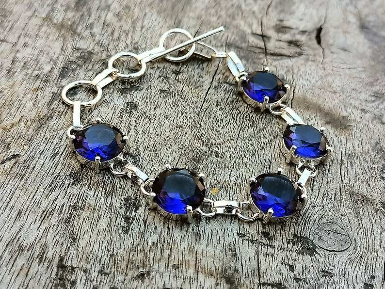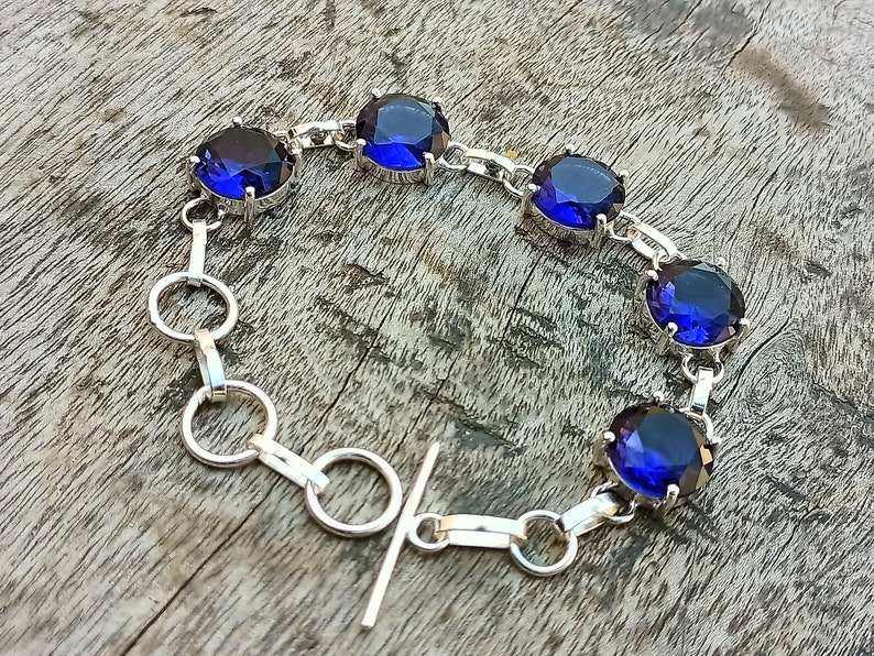 สร้อยข้อมือเงินชุบประดับพลอยบลูโทปาซสวยงาม งานแฮนด์เมด เครื่องประดับอัญมณีสุดพิเศษ ของขวัญสำหรับผู้หญิง สร้อยข้อมือสุดหรู