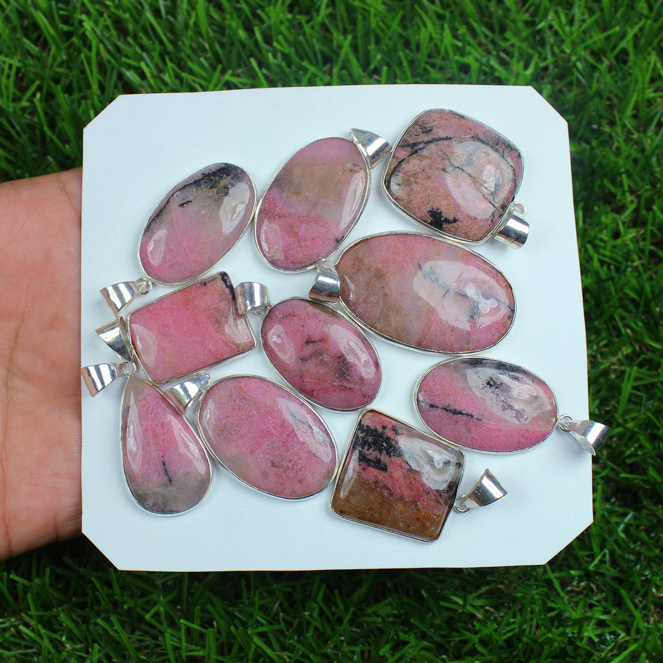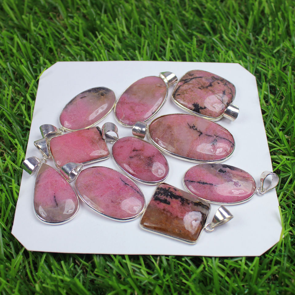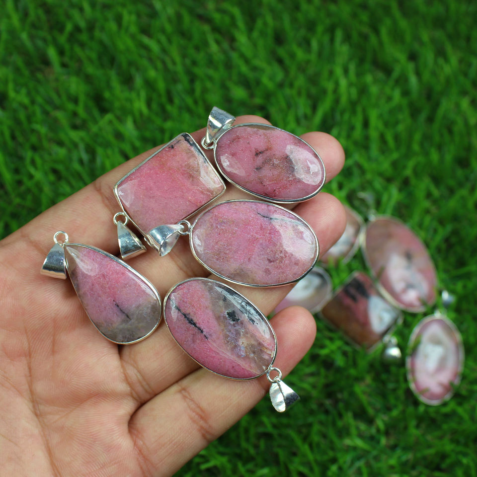 สร้อยคอแบบโบโฮที่สวยงามจี้โรโดไนท์ธรรมชาติชุบเงินด้วยทองเหลืองวัสดุหลักที่จัดจำหน่ายโดยซัพพลายเออร์