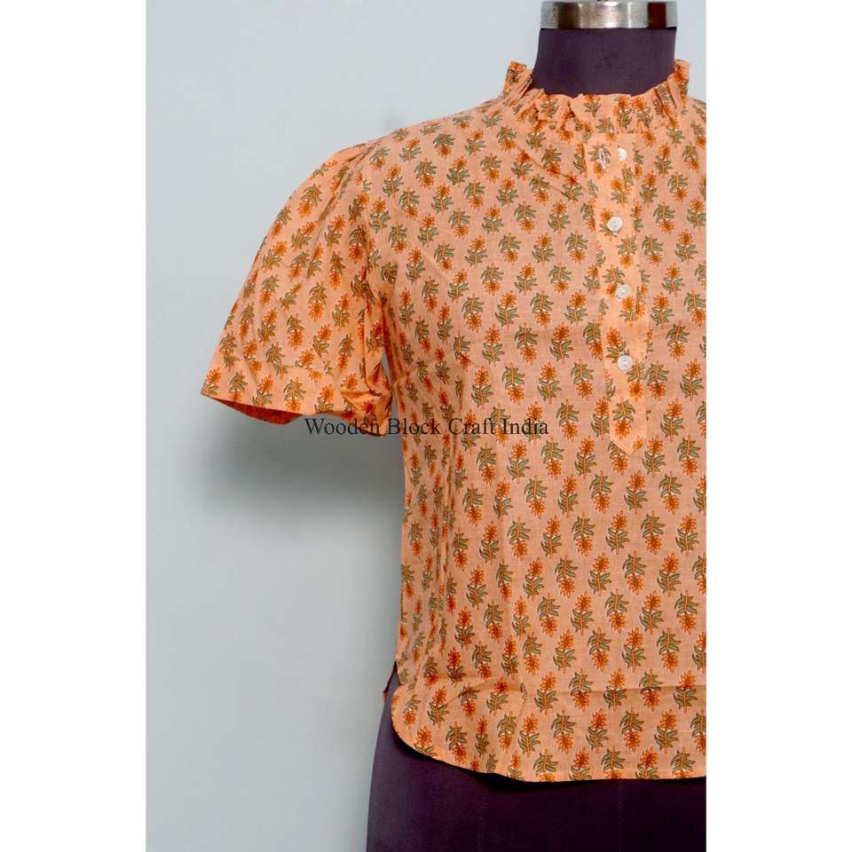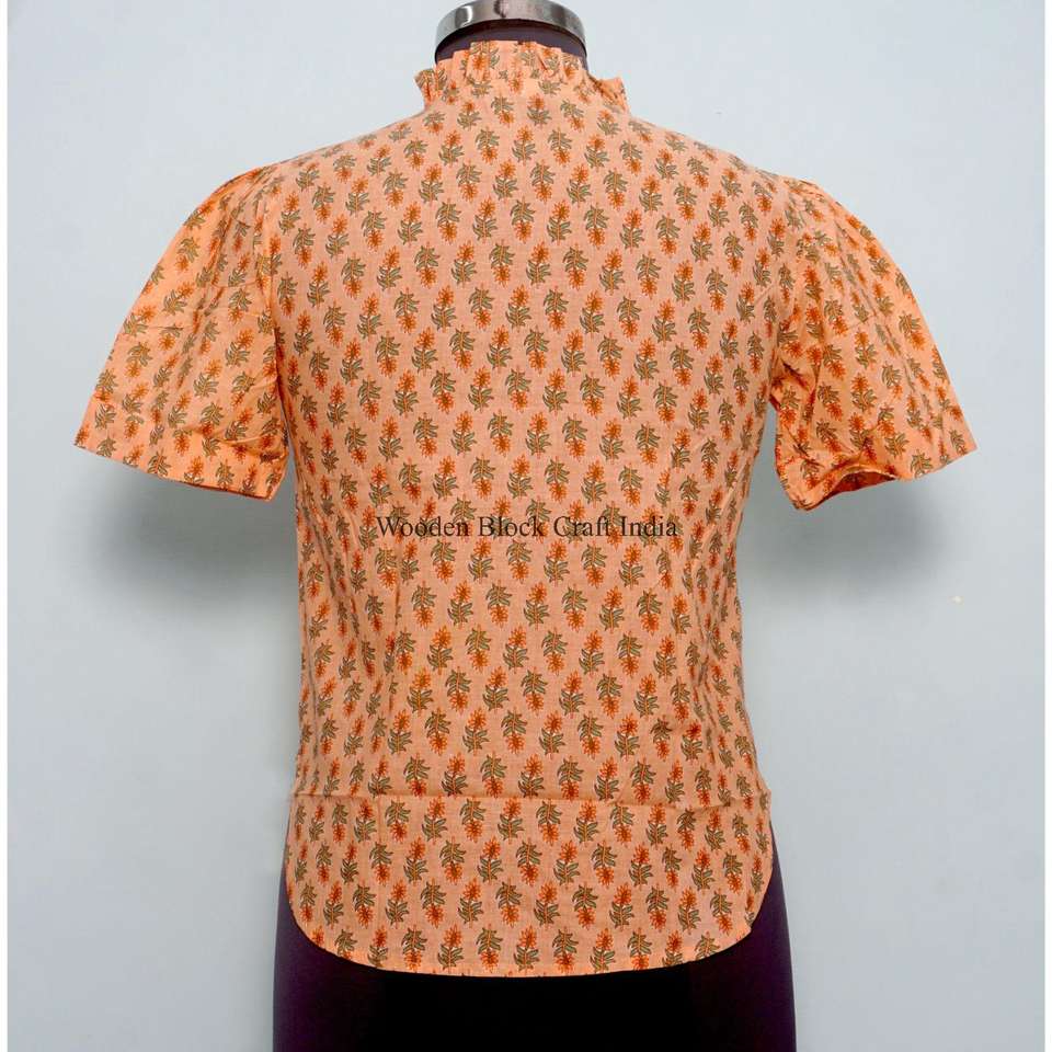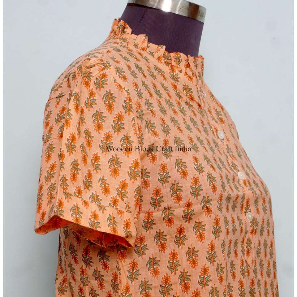 เสื้อเชิ้ตคอเต่าผู้หญิง ดีไซน์โบโฮสวยงาม ตกแต่งกระดุมเก๋ไก๋ ทรงสวยสง่า ใส่สบาย พิมพ์ลายดอกไม้ แขนสั้น ผ้าฝ้าย 100%