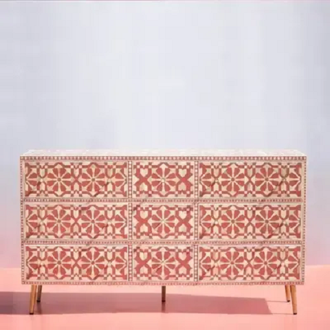 ลิ้นชักสำหรับห้องนอนและห้องนั่งเล่นแบบฝังกระดูกที่สวยงามพร้อมลิ้นชักเก็บของตกแต่งบ้านสไตล์วินเทจ