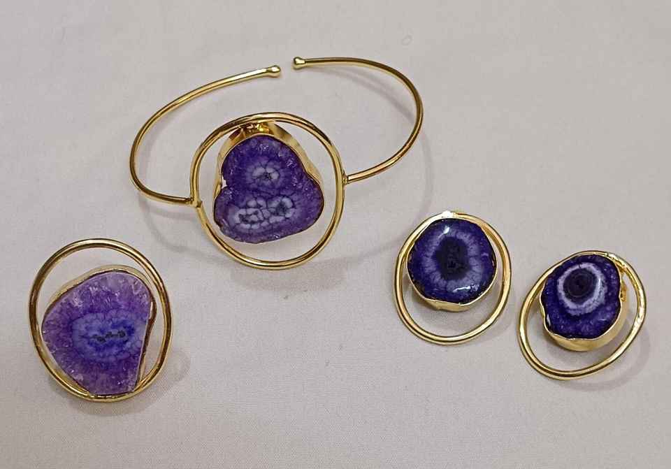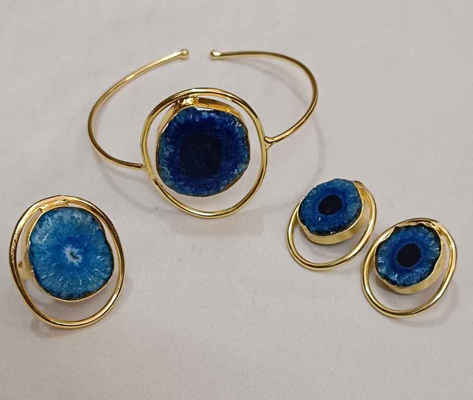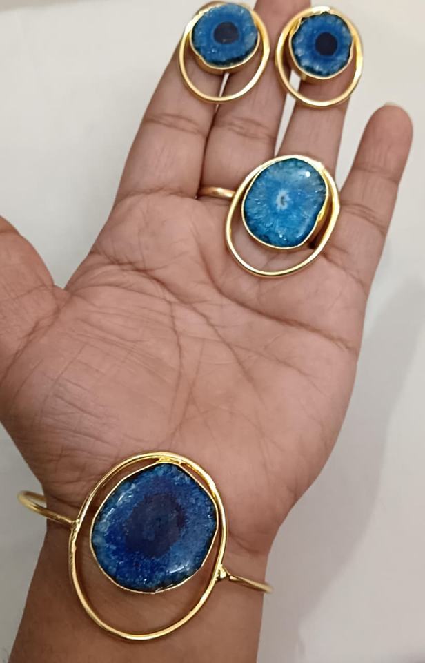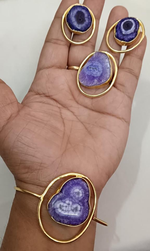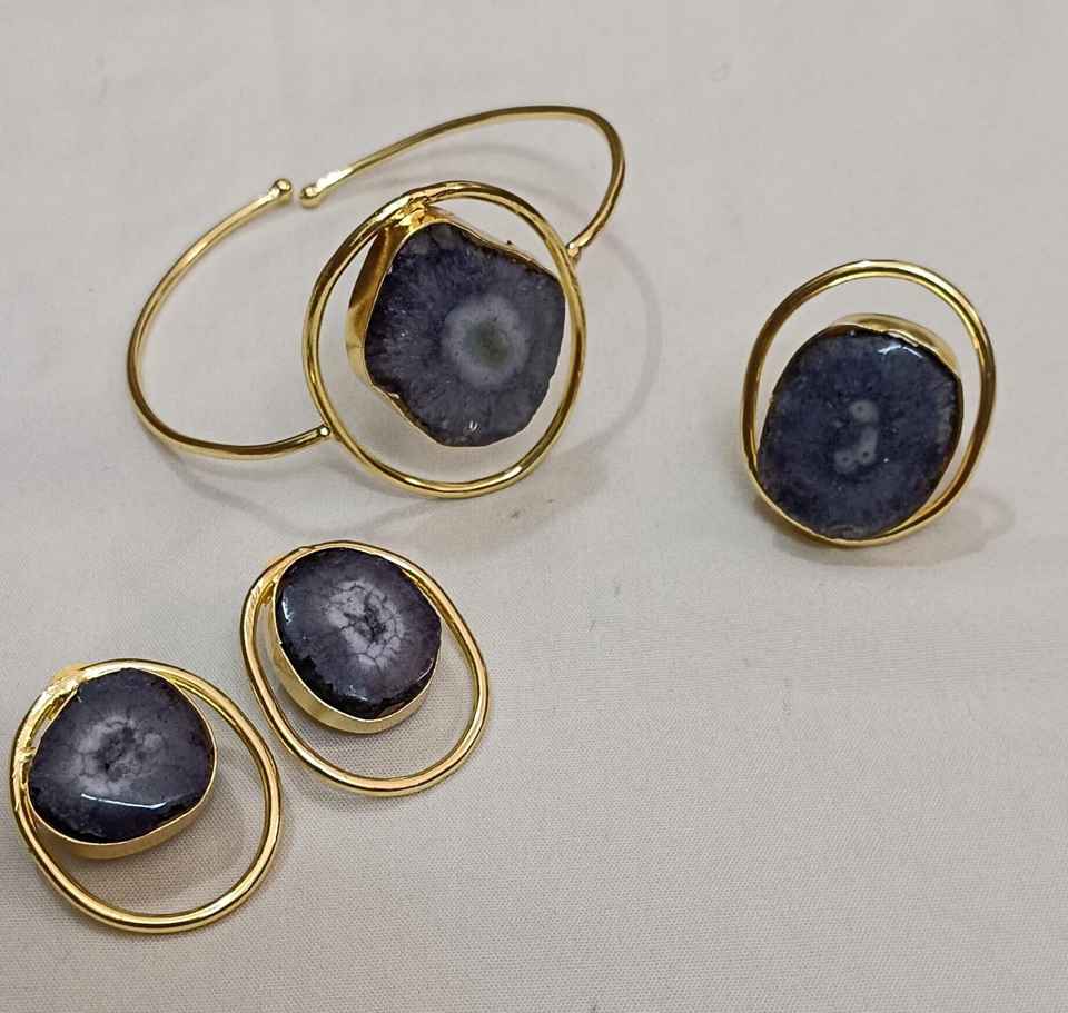 สร้อยข้อมือที่สวยงามพร้อมแหวนและต่างหูเม็ดเดี่ยวชุดเครื่องประดับหินอาเกตระดับพรีเมี่ยมสำหรับผู้หญิงที่มีการออกแบบที่หรูหราประณีต
