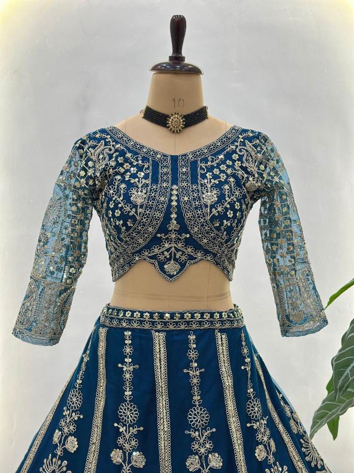 ชุดเลเฮนกาและโจลีเจ้าสาวแสนสวย ผ้าจอร์เจตต์ แต่งขอบด้วยขนเฟอร์เทียม ปักลายผีเสื้อ ดีไซน์แบบดั้งเดิม สำหรับงานแต่งงาน/งานปาร์ตี้