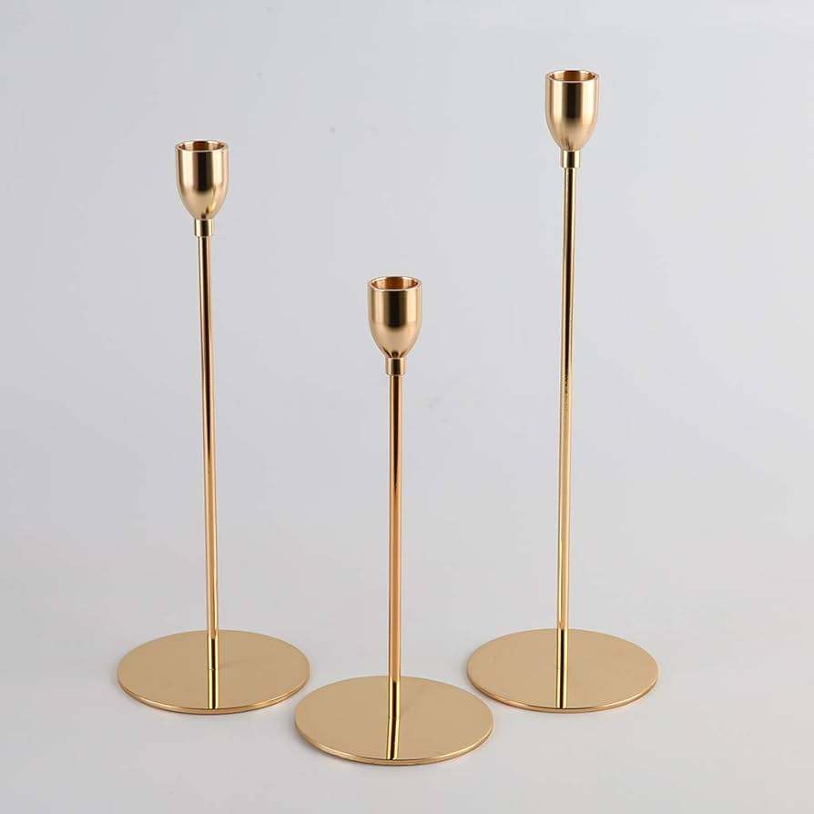 เชิงเทียนที่สวยงามหรูหราทันสมัยสำหรับตกแต่งโต๊ะที่มีสไตล์เชิงเทียนโลหะสีทองเหมาะสำหรับงานแต่งงาน