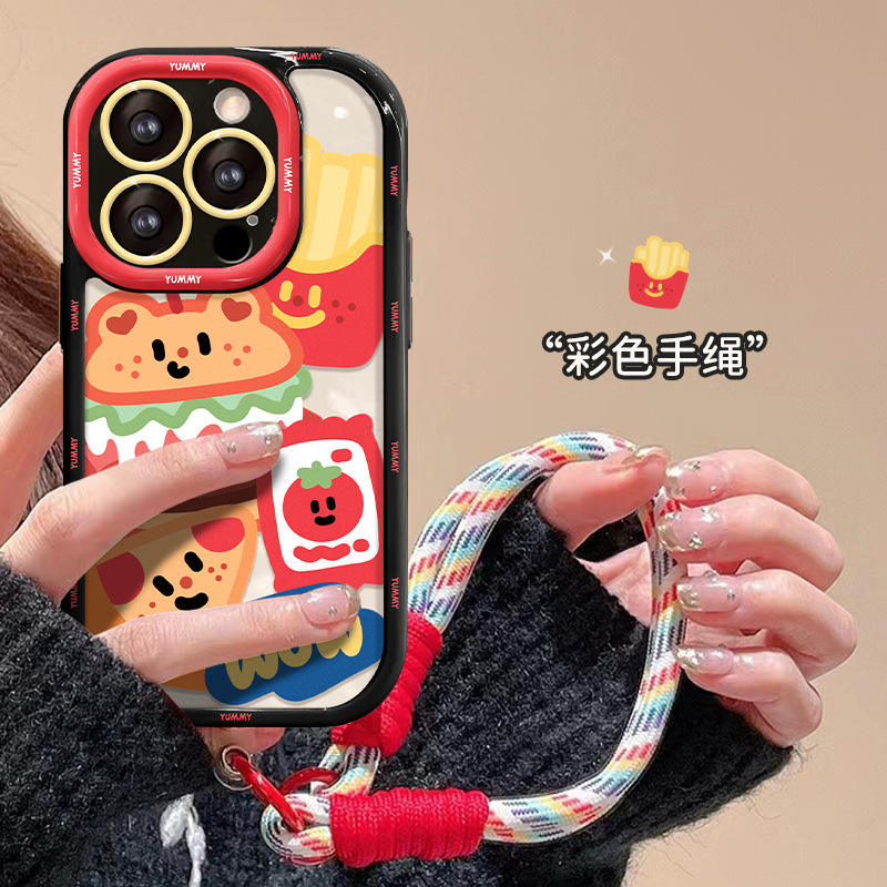 สายคล้องข้อมือลายการ์ตูนที่สวยงามเคสฝาหลังโทรศัพท์มือถือ TPU สำหรับ iPhone 6 7 8 PLUS x XR XS 11 12 13 14 15 16 PRO MAX