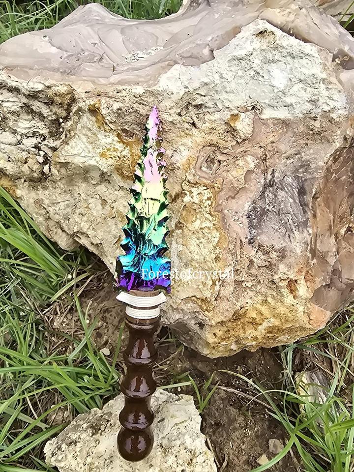 มีดคริสตัลออร่าแกะสลักสวยงาม ด้ามไม้ สไตล์มาสคอต สำหรับตกแต่งแท่นบูชา คุณภาพพรีเมียม พกพาสะดวก