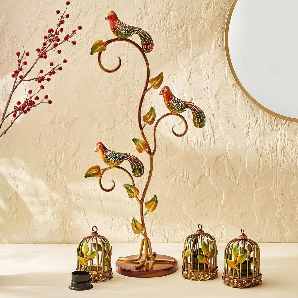 เชิงเทียนเซรามิกรูปต้นไม้ทำด้วยมือสวยงามกรงนกฮัมมิงเป็นมิตรกับสิ่งแวดล้อมตกแต่งบ้านงานแต่งงานสำหรับร้านอาหาร