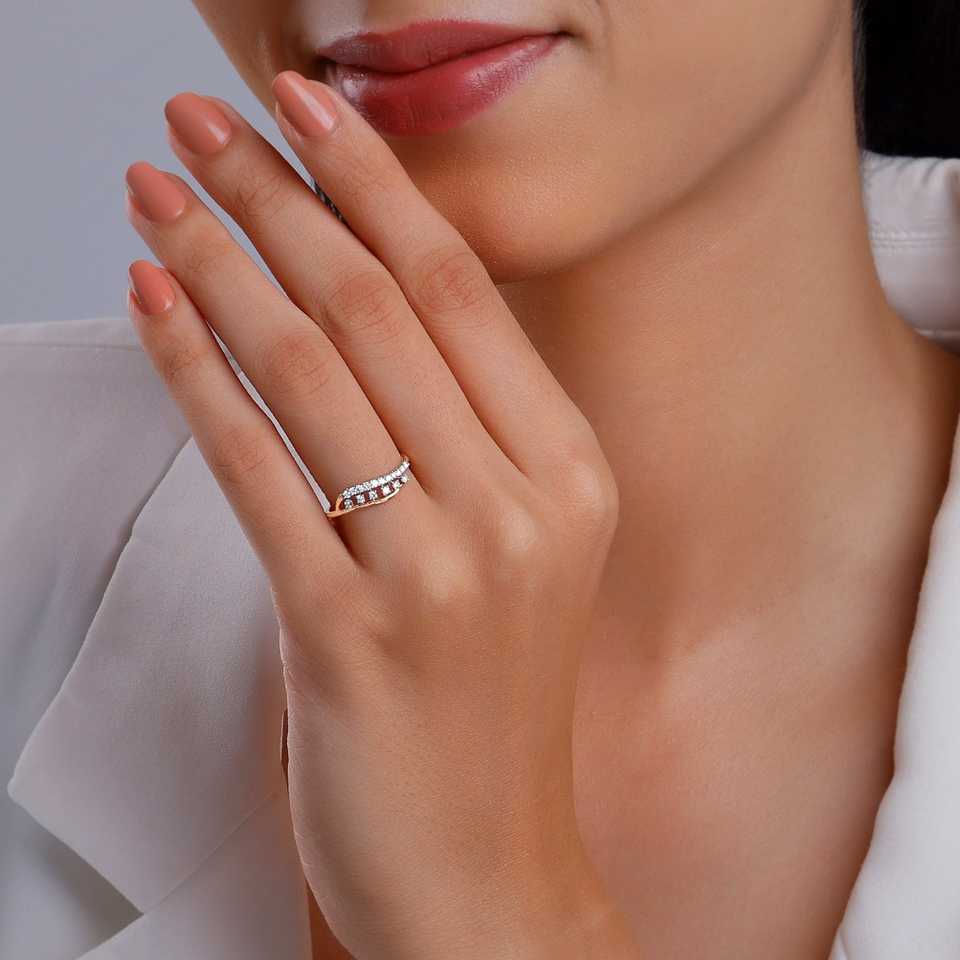แหวนเพชรชุบสีโรสโกลด์สำหรับผู้หญิงคลาสสิกแสนสวยพร้อมตรงกลางติดเพชร