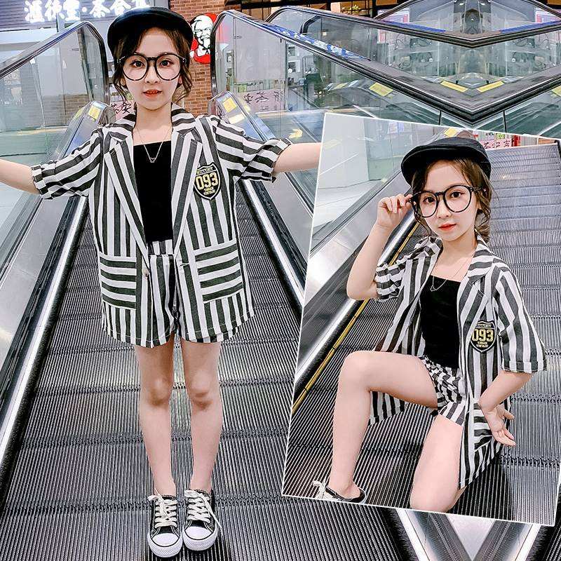 ชุดเสื้อผ้าสวยๆ สำหรับเด็กผู้หญิง ชุดราตรีสองชิ้นสำหรับเด็กและผู้หญิง ลายทาง