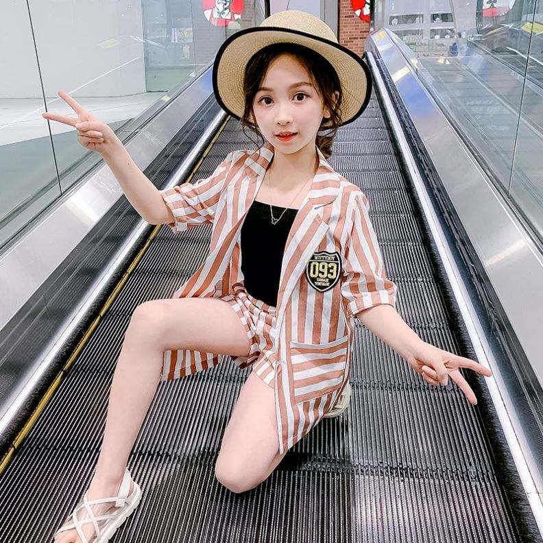 ชุดเสื้อผ้าสวยๆ สำหรับเด็กผู้หญิง ชุดราตรีสองชิ้นสำหรับเด็กและผู้หญิง ลายทาง