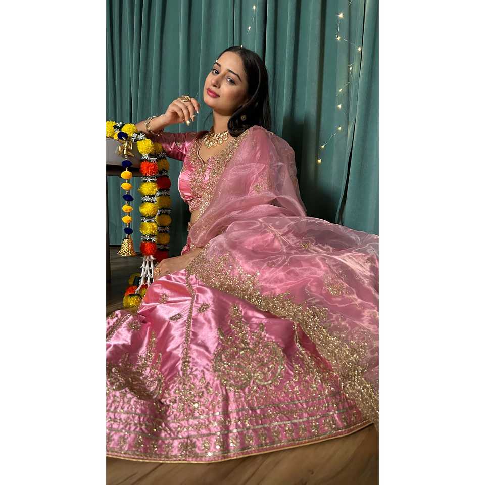 ชุดเลเฮนกาโชลีสวยงามสำหรับงานปาร์ตี้ ประดับด้วยงานปักดิ้นดอริและซารี