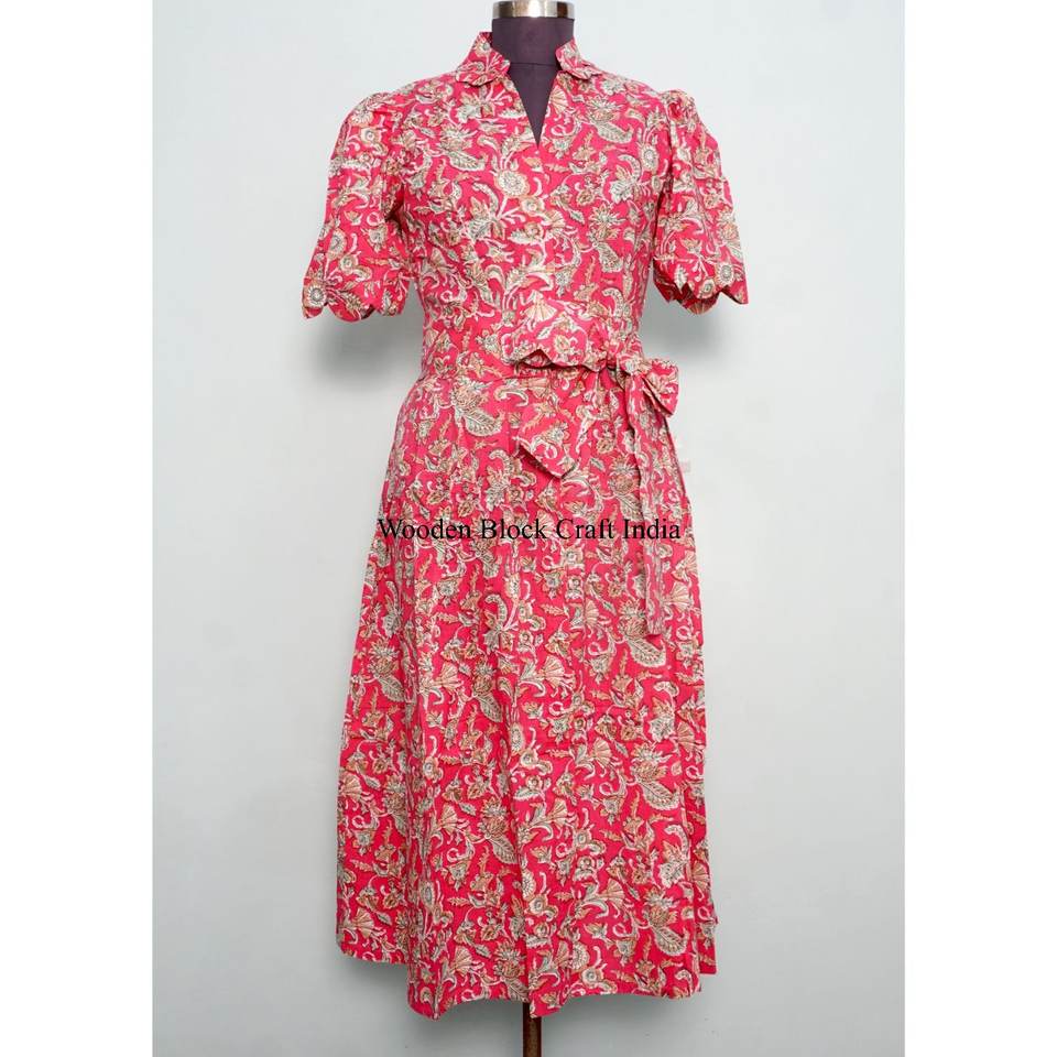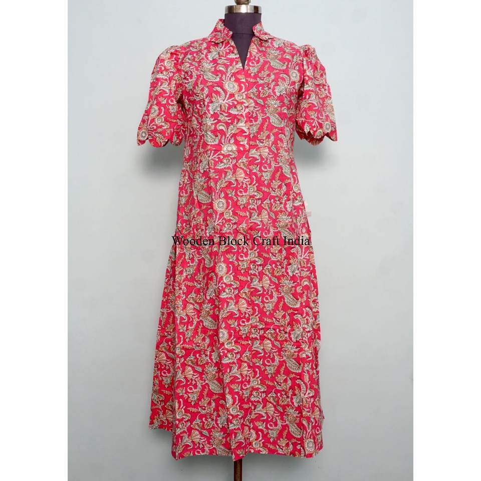 Beautiful Comfortable Short Sleeve Kangura Casual Dress Indian Hand Made Cotton Women Party Wear Dress Hand Block Printed dress