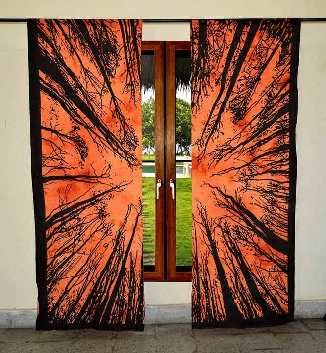 ผ้าม่านหน้าต่างลายต้นไม้ป่าสวยงาม ผ้าฝ้าย ผ้าม่านแขวนผนัง ผลิตโดยผู้ส่งสินค้าชาวอินเดีย