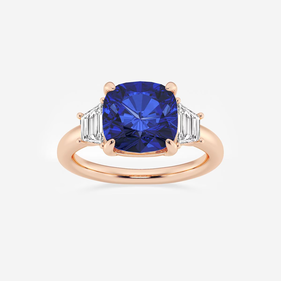 แหวนหมั้นพลอยแซฟไฟร์ทรงคุชชั่นสวยงาม ขนาด 9 มม. ประดับเพชรแล็บโกรว์ 5/8 กะรัต พร้อมพลอยสีน้ำเงิน