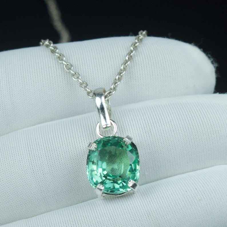 จี้แซฟไฟร์สีเขียวสวยงาม ประดับบนสร้อยเงินแท้ 925 สไตล์วินเทจ ของขวัญประจำเดือนเกิดเดือนกันยายน