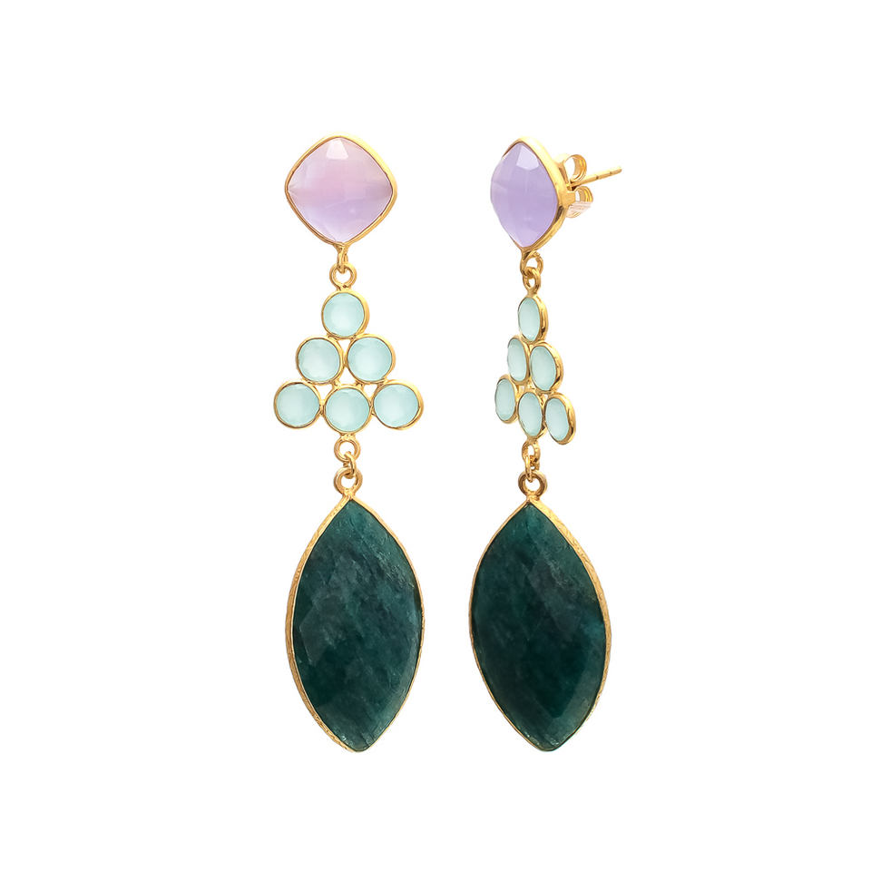 ต่างหูห้อยที่สวยงาม ต่างหูชุบทอง ชุดพลอยอะควา ชาเคลดอนี่ อเมโซไนต์ และทัวร์มาลีนสําหรับผู้หญิงและเด็กผู้หญิง