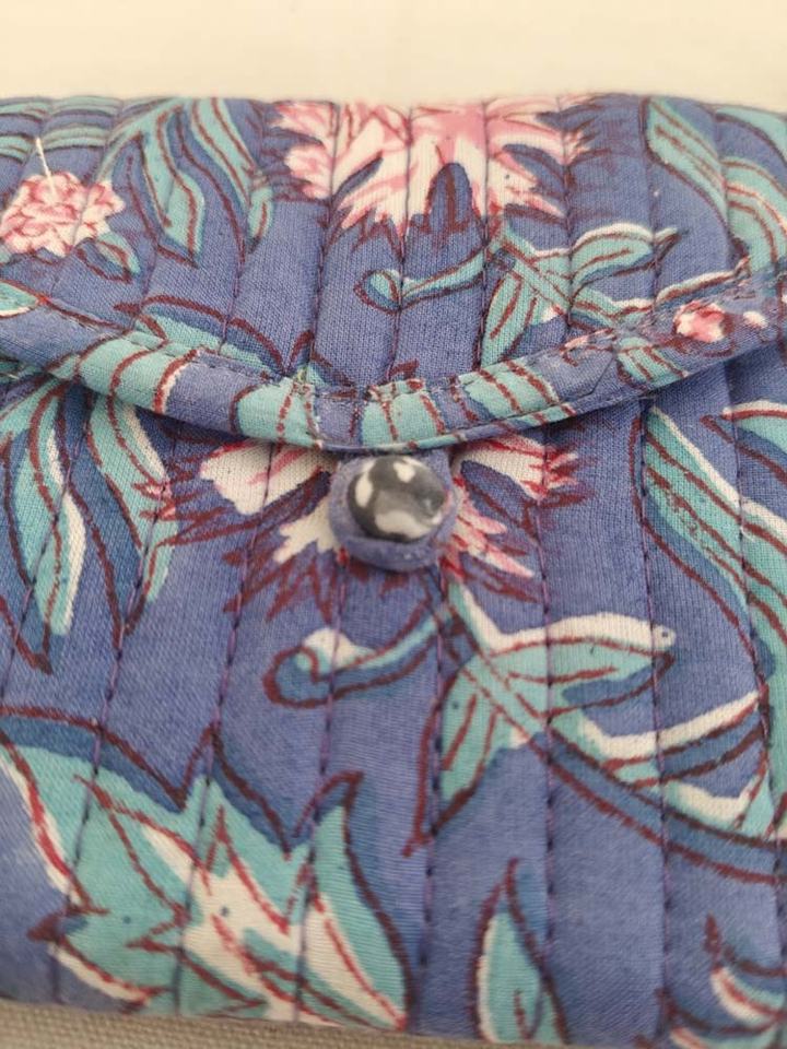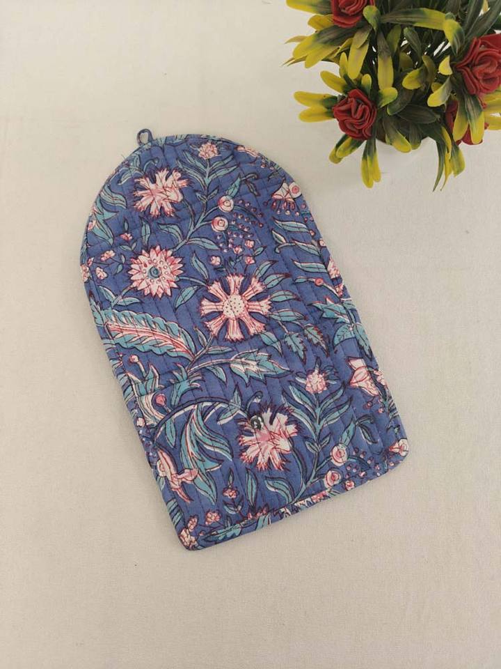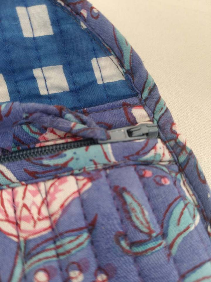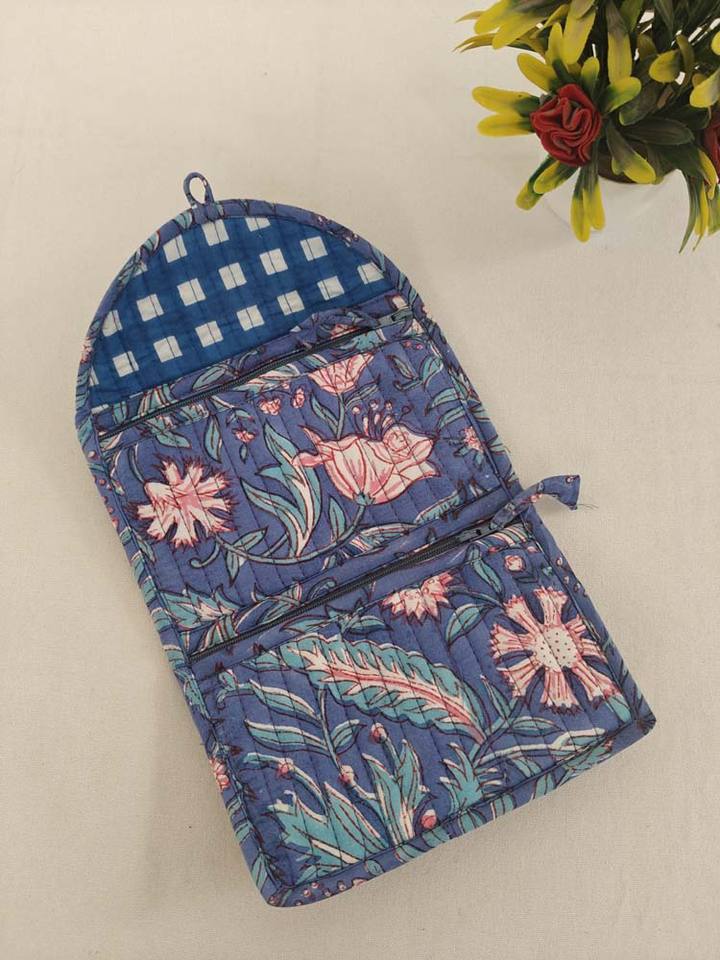 กระเป๋าใส่เครื่องประดับทำจากผ้าฝ้ายสีฟ้าเข้มเป็นมิตรต่อสิ่งแวดล้อมน้ำหนักเบาใช้ซ้ำได้มีซิปพิมพ์ลายอเนกประสงค์
