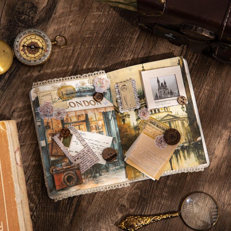กระดาษลายวินเทจธีมการเดินทางวันที่แสนงดงาม สำหรับตกแต่งสมุดบันทึก ซีรีส์สมุดจดบันทึก ตกแต่งหนังสือ และงานคอลลาจ