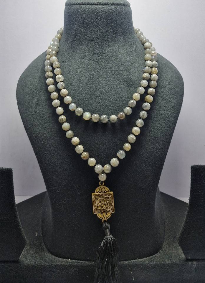 สร้อยคอลูกปัด108 JAP Mala ดีไซน์สวยงามพร้อมลูกปัดหินอัญมณีลาบราดอไรต์ธรรมชาติ