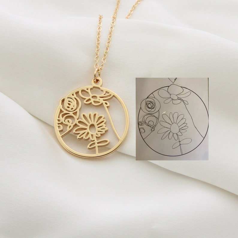 Beautiful Design Drawing Chain Necklace Customized Artwork Necklace Art Photo Logo Jewelry Memorial Gift for Mother Necklace