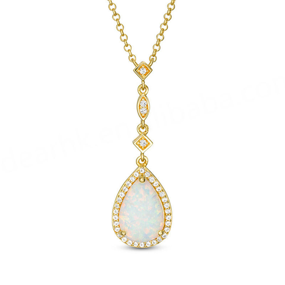 เครื่องประดับแฟชั่นดีไซน์สวยงาม จี้รูปทรงลูกแพร์ประดับโอปอลสังเคราะห์และเพชร CZ ตัวเรือนเงินแท้ S925 ชุบทอง สำหรับผู้หญิง