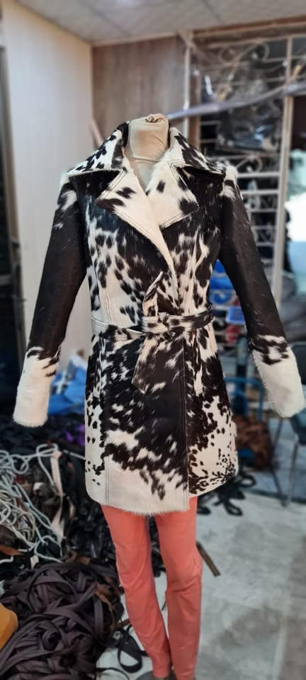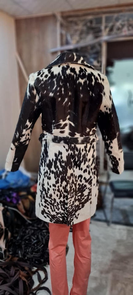 เสื้อโค้ทหนังวัวยาวถึงเข่าสำหรับผู้หญิงเสื้อโค้ทขนสัตว์ระบายอากาศกันน้ำสีธรรมชาติย้อมสีธรรมดา