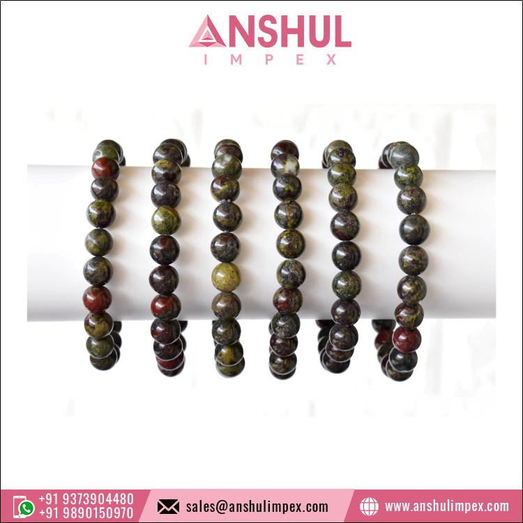 การออกแบบที่สวยงามสีเขียวรักษาแอฟริกัน Bloodstone รอบพลอยสร้อยข้อมือลูกปัด