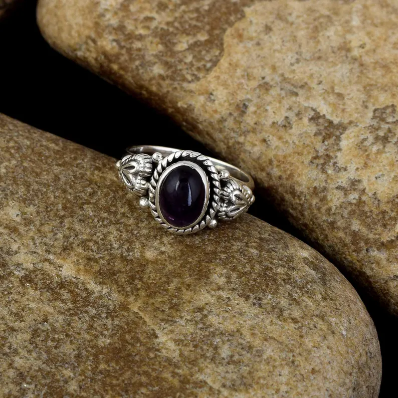 แหวนพลอยอเมทิสต์แฮนด์เมดดีไซน์สวยงาม925เงินสเตอลิงเครื่องประดับคริสเตียนเรียงซ้อนกันขายส่งราคาโรงงาน