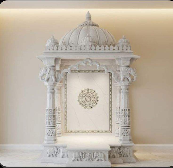 Beautiful Design High Quality Handmade White Marble Temple Pooja Mandir Spiritual Home Decoration Modern Style Customizable Size
