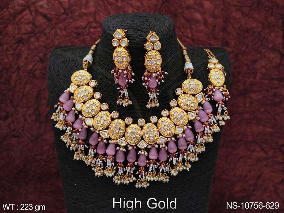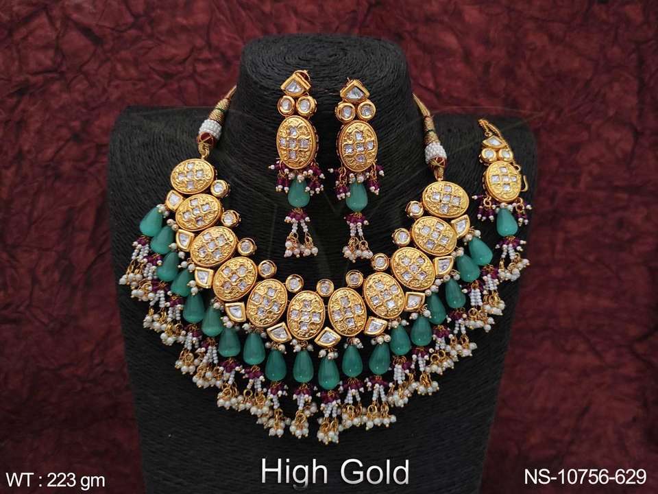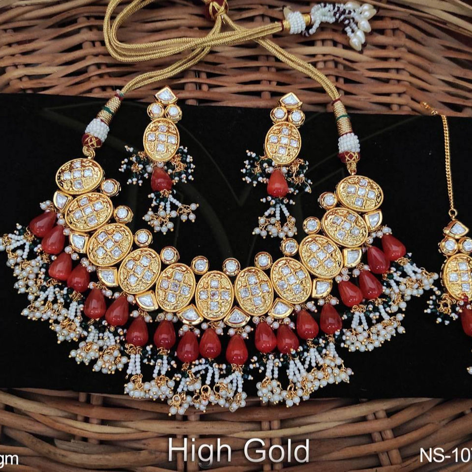 การออกแบบที่สวยงามเครื่องประดับ Kundan ปาร์ตี้ชุบทองสูงสวมชุดสร้อยคอเค้นคอ Kundan