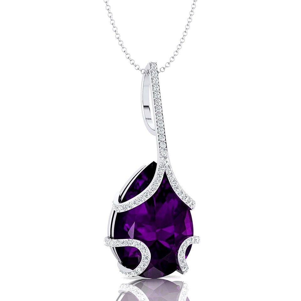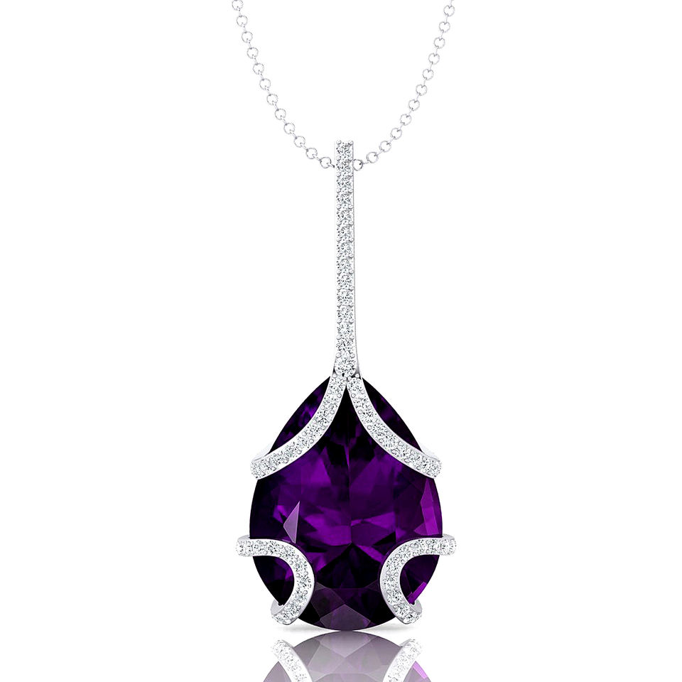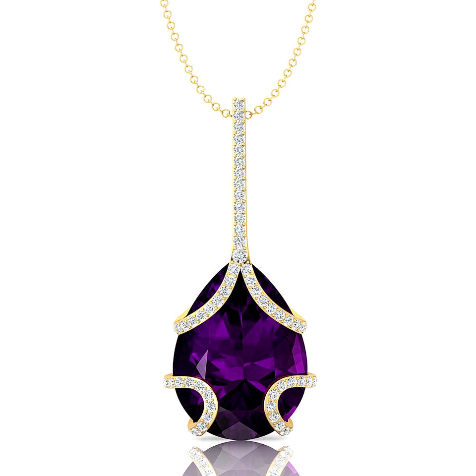 การออกแบบที่สวยงามอเมทิสต์ธรรมชาติจี้หยดน้ําตาด้วยเพชรแท้ในทองคําแท้ 18k เครื่องประดับ Birthstone ที่เรียบง่ายขายส่ง