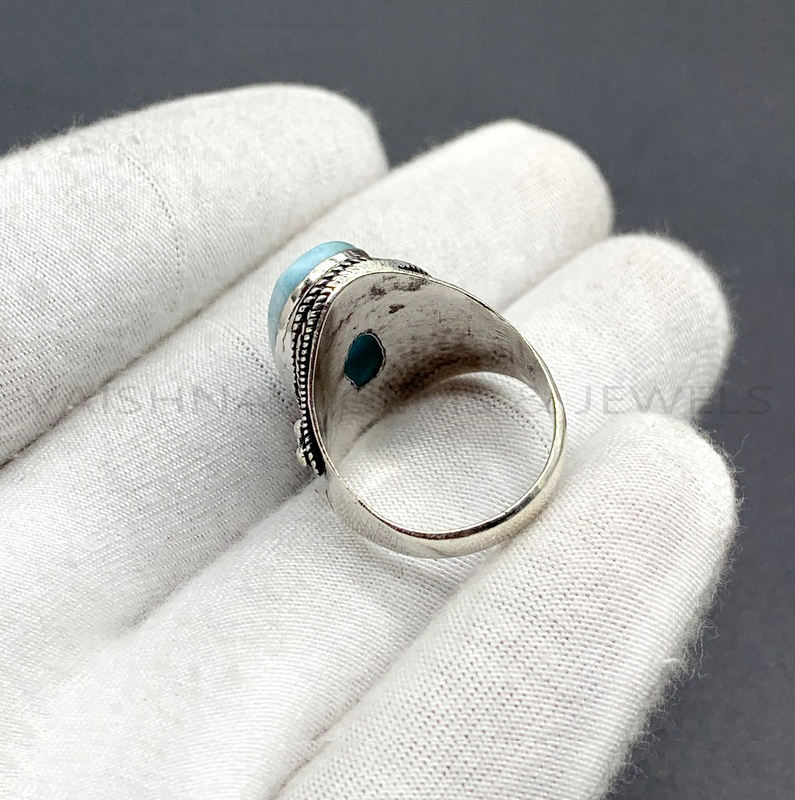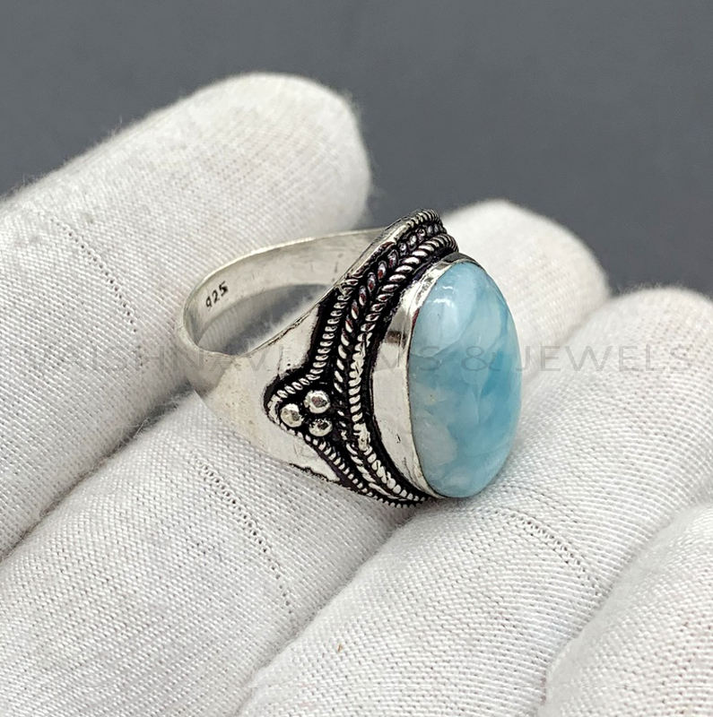 แหวนหมั้นผู้หญิงทันสมัยสไตล์โบฮีเมียนทำมือรูปวงรี925ลาริมธรรมชาติดีไซน์สวย