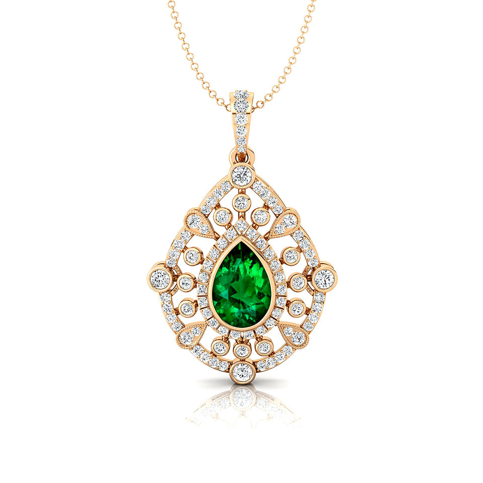 จี้พลอยสีเขียวมรกตประดับด้วยเพชรสีขาวธรรมชาติสีทอง18K ประดับห้องแล็บเพื่อการเพาะปลูกลูกแพร์ดีไซน์สวยงาม