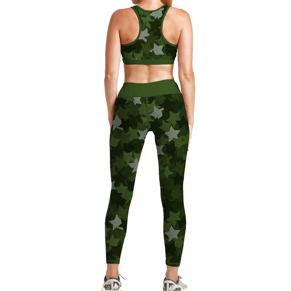 ชุดออกกำลังกายแบบซับลิเมชั่นดีไซน์สวยงาม ชุดโยคะผู้หญิง 2 ชิ้น ชุดฟิตเนส ชุดกีฬา เสื้อชั้นในกีฬา กางเกงเลกกิ้ง ชุดโยคะ