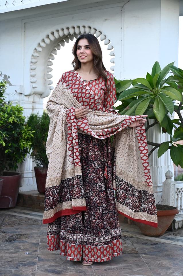 ชุดเลเฮนกาโชลีผ้าฝ้ายพิมพ์ลายด้วยมือแบบดั้งเดิมสวยงาม 100% น้ำหนักเบา แห้งเร็ว ป้องกันแสงแดด เหมาะสำหรับฤดูร้อน สไตล์ชาติพันธุ์