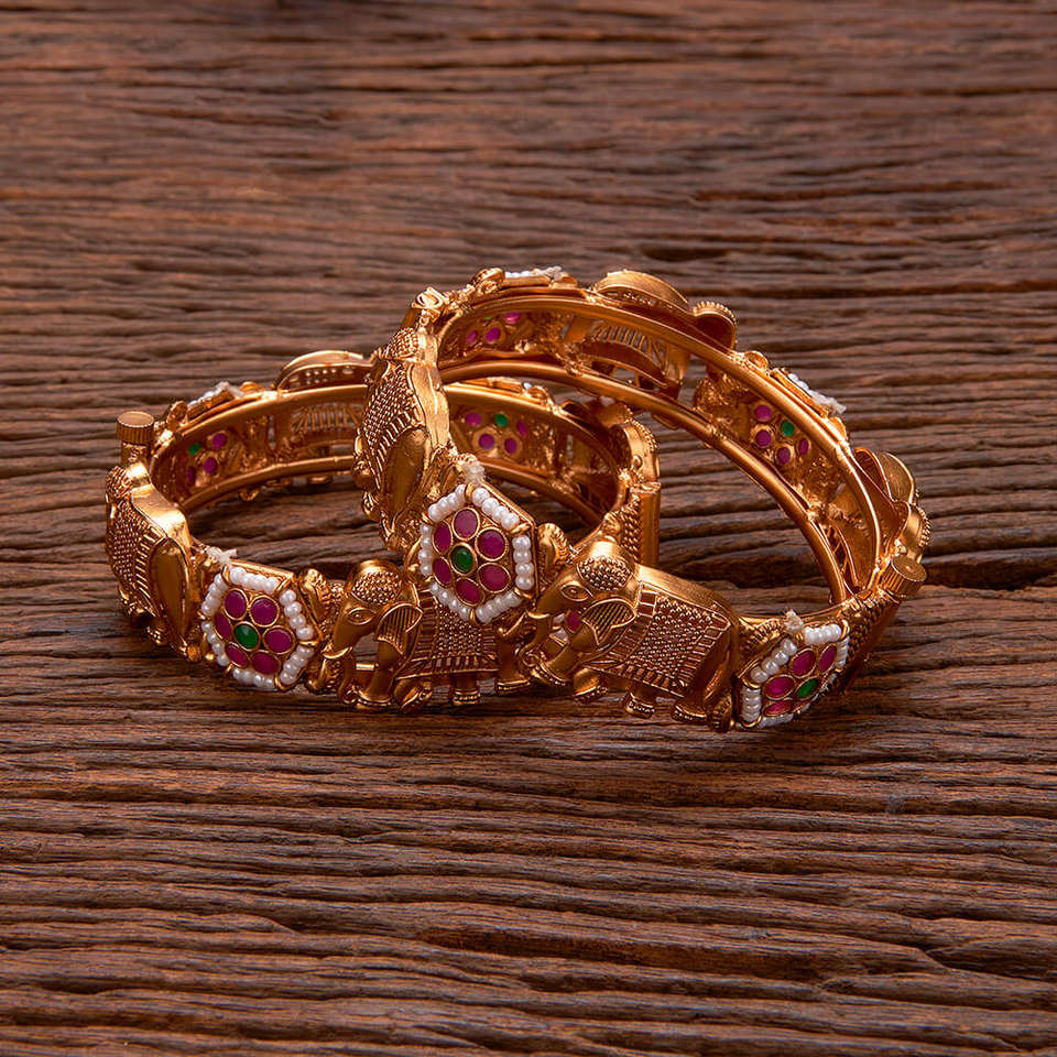 กำไลไข่มุกแบบเปิดได้ทำมือสไตล์อินเดียใต้โบราณดีไซน์สวยเคลือบสีทอง