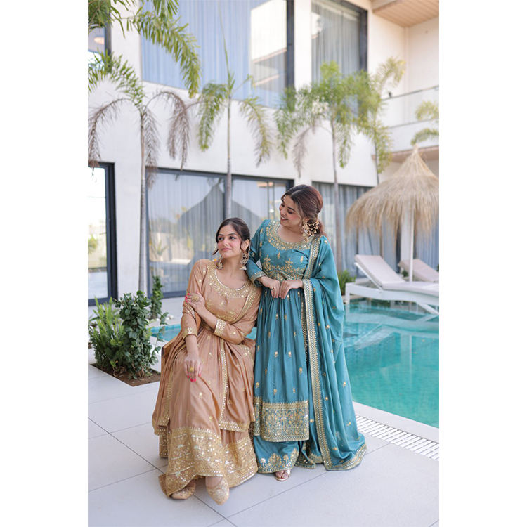 ชุดอานาร์กาลีผ้าไหมซูเปอร์สวยหรู งานปักเลื่อม ดีไซน์สวยงามแบบอินเดียดั้งเดิม สำหรับขาย