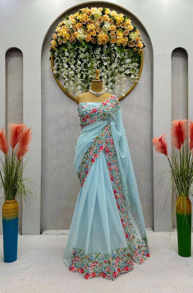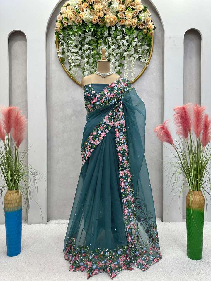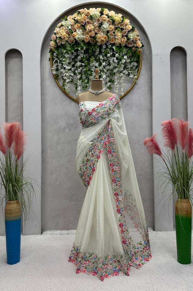 Saree ออกแบบที่สวยงามด้วยด้ายและลำดับกับงานมุก