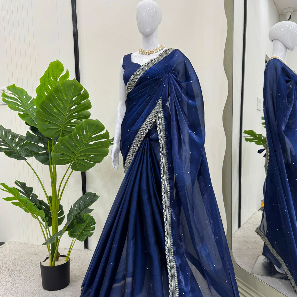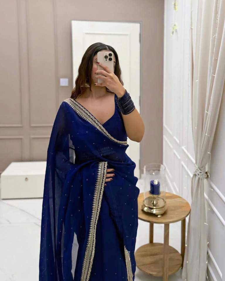 ส่าหรีออกแบบสวยพร้อมด้ายและลำดับทำงานกับ LCD เพชรบนส่าหรีและเสื้อสตรี