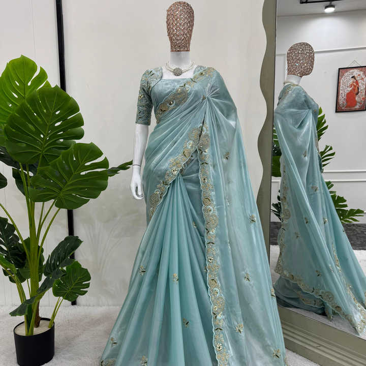 Saree ออกแบบที่สวยงามด้วยด้ายและลำดับการทำงาน