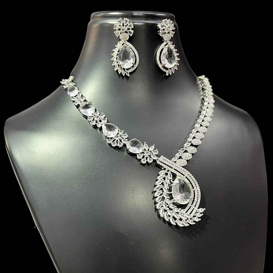 ชุดสร้อยคอเพชรแบบอเมริกันตัดดาวดีไซน์สวยพร้อมต่างหูสำหรับผู้หญิงและเด็กผู้หญิงเหมาะสำหรับงานแต่งงานชุดปาร์ตี้