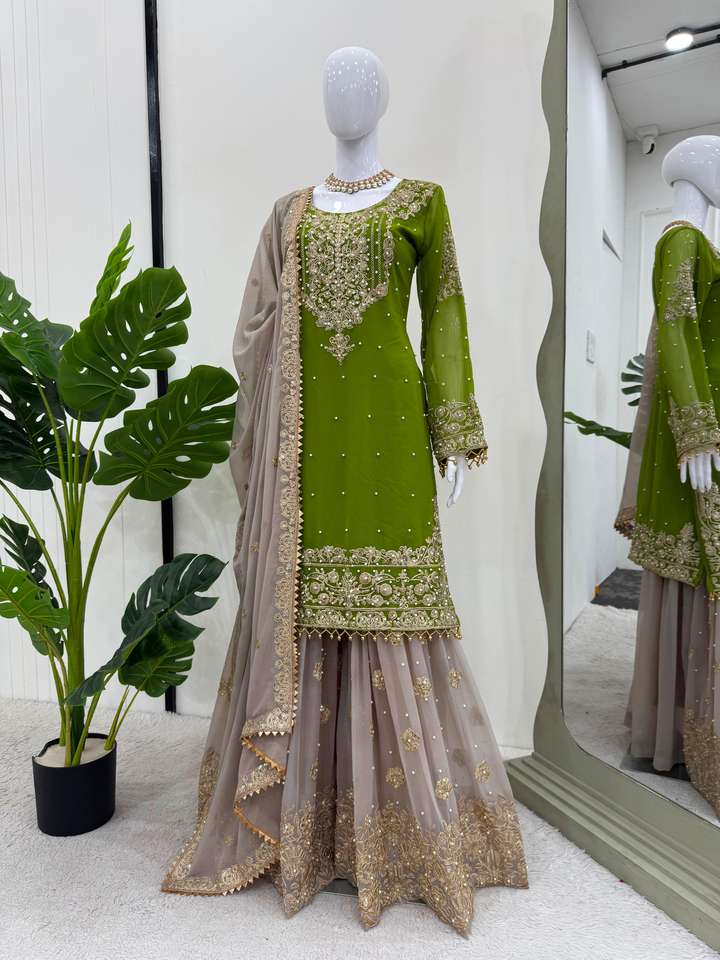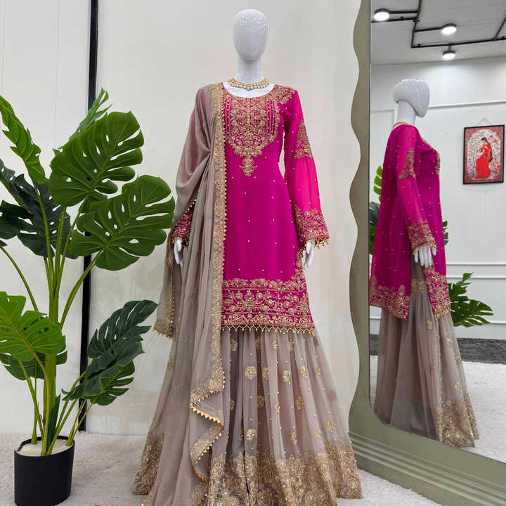 ชุดนักออกแบบที่สวยงามและ plazzo-dupatta พร้อมงานเขียนโค้ดและลำดับ
