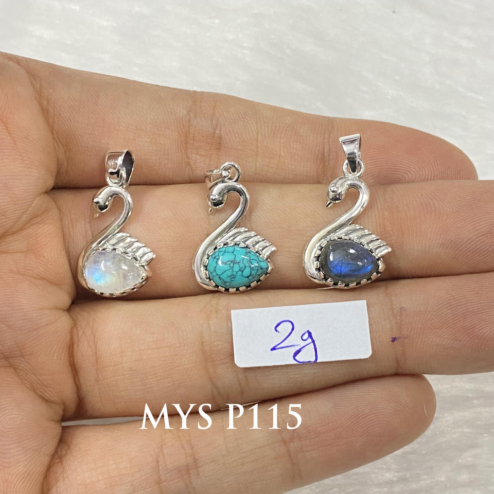 Beautiful Duck Design 925 Silver Sterling Pendant With Handmade Gemstone Fine Jewelry