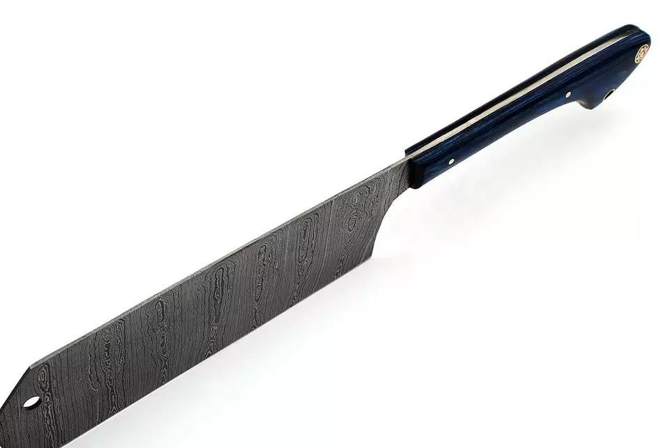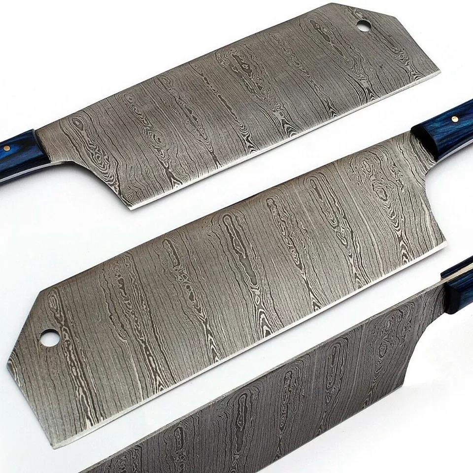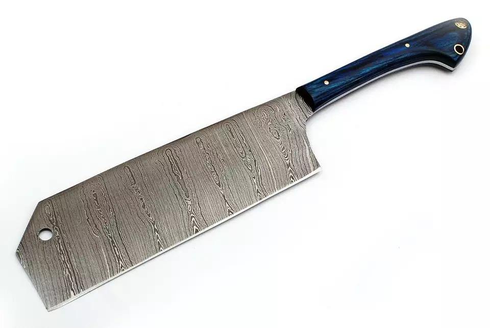 Beautiful Eco-Friendly Customized Damascus Steel Cleaver Chef 7.5" Razor Sharp Unique Blue Natural Wood Handle Wave Pattern